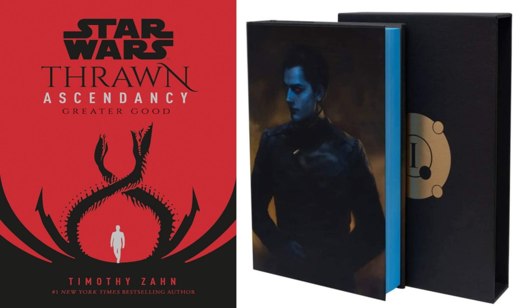 ¡Pero eso no es todo! Si necesitas ponerte al día de la manera más elegante posible antes de sumergirte en Greater Good, para celebrar el 30 aniversario de Heir to the Empire de Thrawn, Del Rey se ha asociado con Out of Print para lanzar una edición muy limitada de Thrawn Ascendancy: Chaos Rising. El nuevo libro viene envuelto en una funda con estampado de aluminio e impreso con una pieza de la iconografía chiss.
