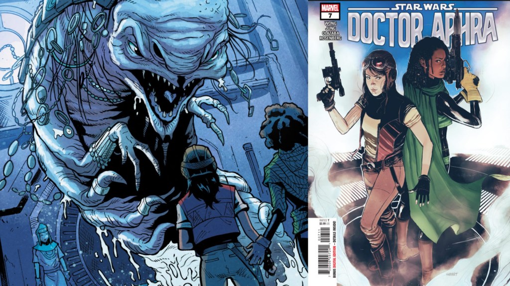Doctora Aphra #7, escrito por Alyssa Wong, dibujado por Minkyu Jung y con portadas de Joshua “SWAY” Swaby y Jenny Frison, llega el 20 de enero y está disponible para pre-ordenar en Comixology y en tu tienda local de comics.