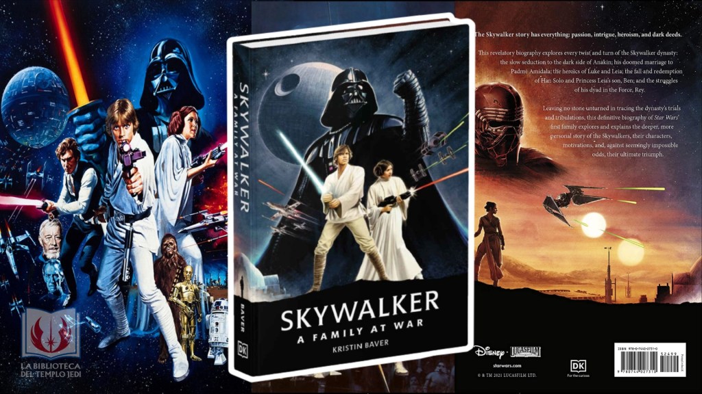 Durante tres generaciones, los miembros de la familia Skywalker, ya sean nacidos con el nombre o elegidos para llevar el legado, lucharon por equilibrar sus propias emociones y las batallas externas en la galaxia. En el nuevo libro de Kristin Baver titulado Skywalker: A Family at War, la autora examina los eventos que se desarrollaron en la saga Skywalker en la pantalla, así como a través de libros, cómics y otras narraciones canónicas para dar un relato detallado de las vidas de los miembros clave de la familia en medio de sus tribulaciones y triunfos. Portada de Matt Ferguson.