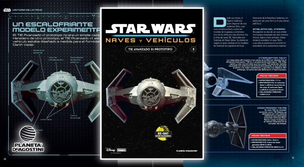El nuevo Coleccionable Star Wars publicado por la editorial Planeta DeAgostini en España que va a costar de 60 entregas, con el título Star Wars Naves y Vehículos, nos trae reproducciones de gran calidad Die-Cast de una calidad extraordinaria. Cada entrega llevará una revista informativa con datos de la nave o vehículo y el segundo número trae la temible nave Tie Avanzado de Darth Vader. Dstos de la nave, sus variaciones, armas y su historia al lado del Lord Sith complementan la información de ésta entrega que ya está llegando a los suscriptores del coleccionable.