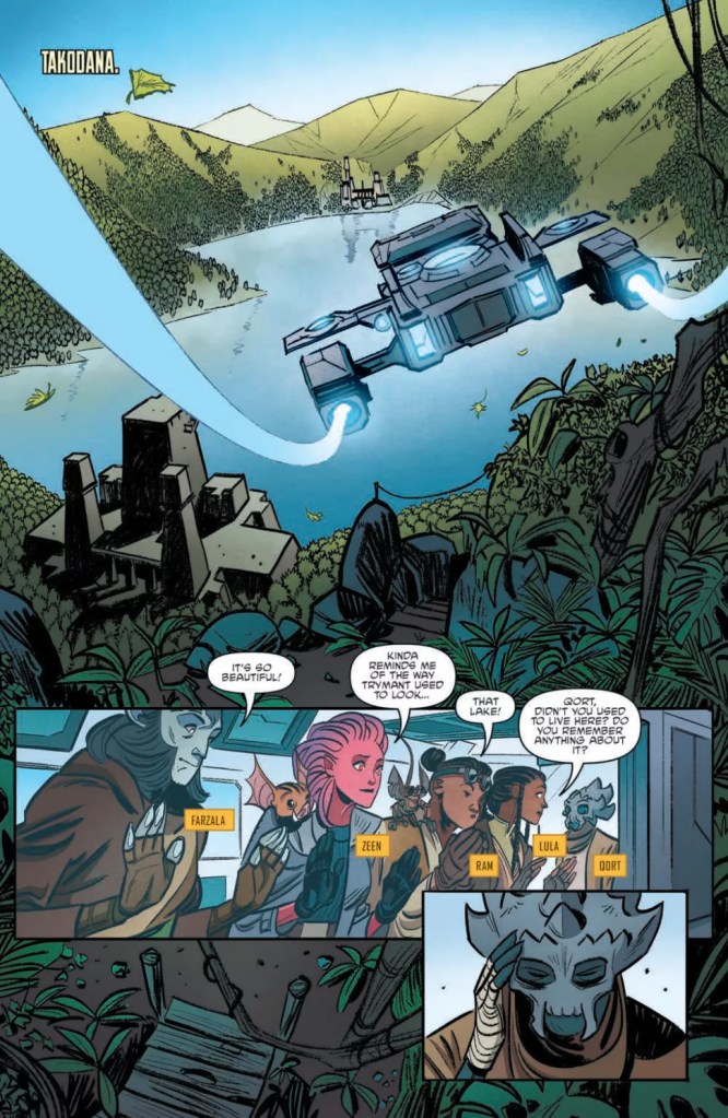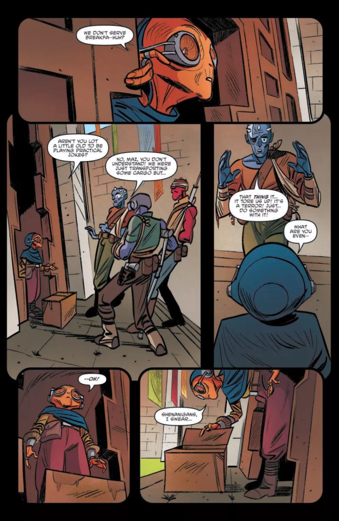Newsarama: Star Wars: The High Republic Adventures #9 presentará un viaje a Takodana – el mismo planeta donde está el castillo de Maz Kanata. Han Solo dijo que Kanata había dirigido ese lugar durante más de mil años, y Alta República es unos 300 años antes de Una nueva esperanza, creo. ¿Qué puedes contarnos sobre su viaje hasta allí, y sobre la posibilidad de que se cuelen en el bar de Maz sin que les saquen tarjeta?