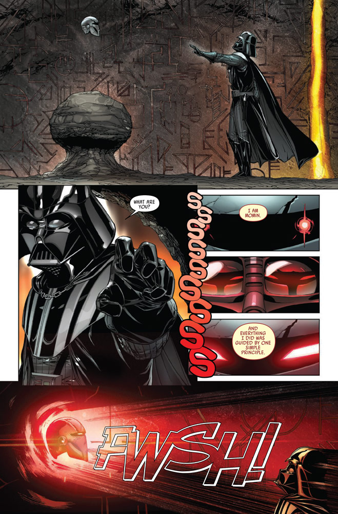 Uno de los objetos más conocidos de la Colección Bogan era la máscara de Darth Momin. Momin, un Lord Sith de antaño, llevaba una siniestra máscara con ojos rojos brillantes. Momin era conocido por crear esculturas sádicas que lo llevaron a prisión. Un tiempo después de su encarcelamiento fue abordado por Darth Shaa, que se convirtió en su maestro. Finalmente la traicionó, como hacen los Sith, y continuó aprendiendo los caminos del Lado Oscuro. Después de su tiempo, los Jedi recuperaron su casco y lo almacenaron en la Colección Bogan, para ser regalado siglos después a Darth Vader. Vader no tardó en darse cuenta de que la máscara era bastante convincente y no sólo podía llamar a la gente, sino que poseía a quienes se la ponían con el espíritu maligno de Momin.