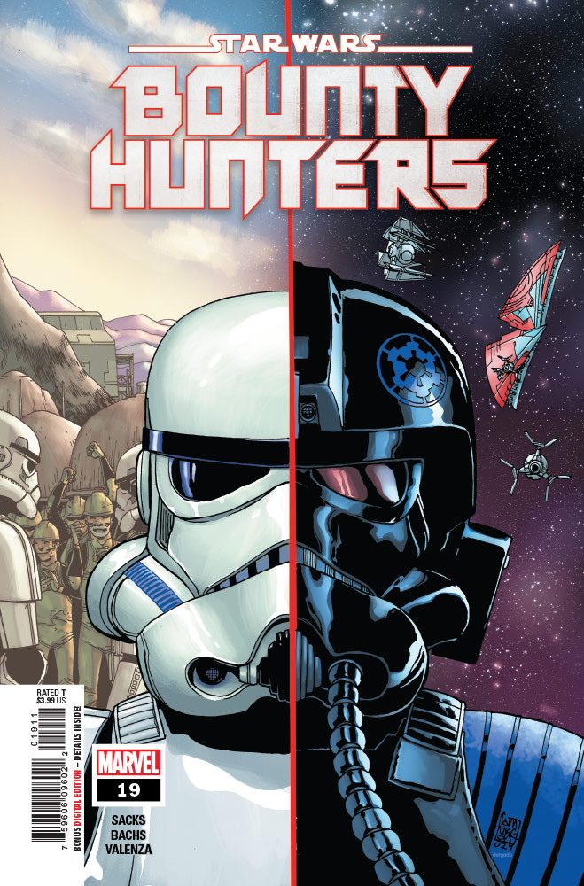 Bounty Hunters #19, del escritor Ethan Sacks y el artista Ramón F. Bachs, con portada de Giuseppe Camuncoli, llega el 29 de diciembre.