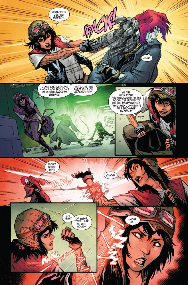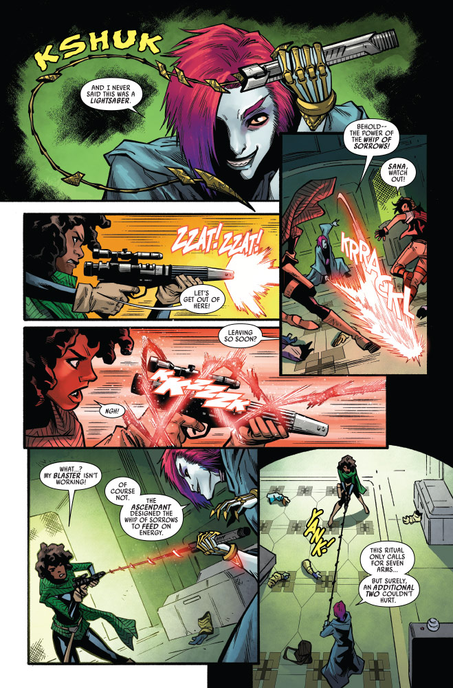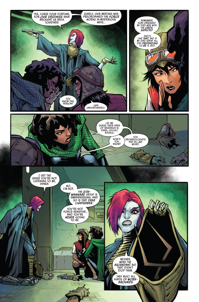 Porque cumplimos nuestras promesas y mantenerte al día con todos los adelantos de Star Wars es una de ellas aquí os dejamos dos muy esperados. En el avance de Doctor Aphra, la arqueóloga renegada y Sana Starros se encuentran con la vieja némesis de Aphra en Coruscant, en medio de un ritual arcano, por supuesto.