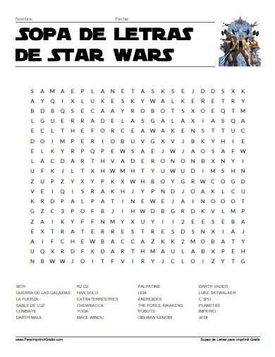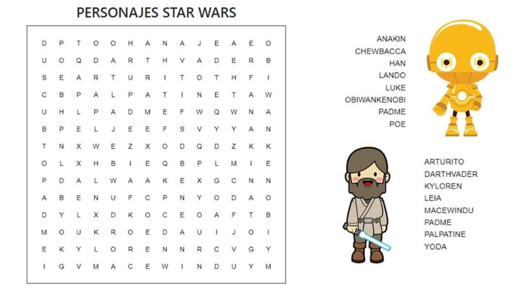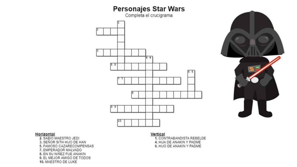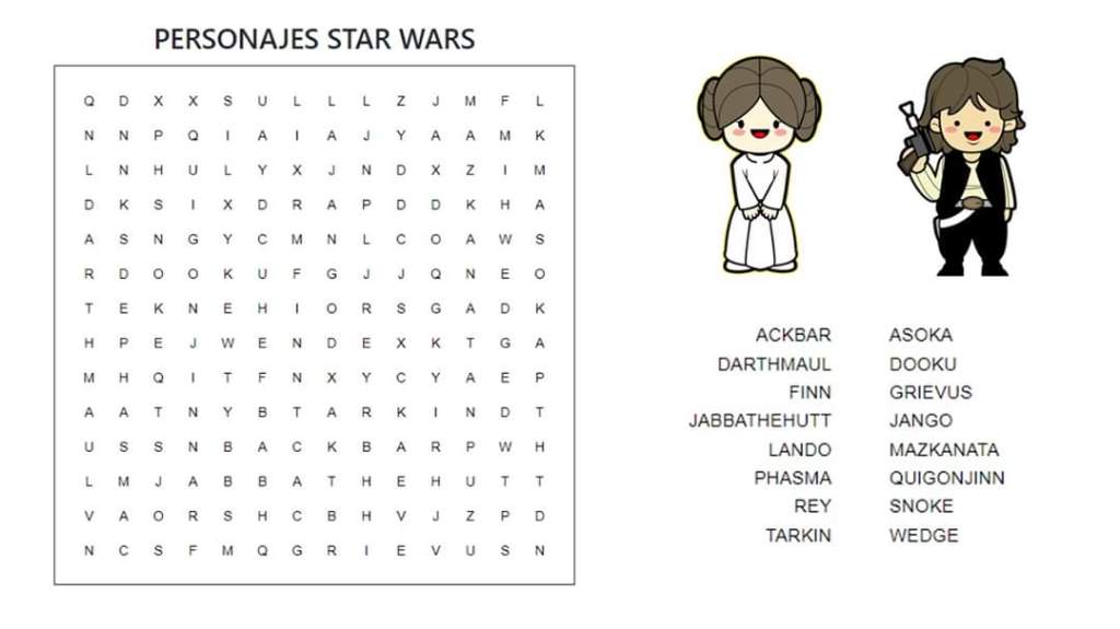 Estar entretenidos mediante crucigramas, sopa de letras, laberintos y otros juegos clásicos nunca ha sido más divertido que ahora que estan basados en nuestro universo preferido. Ayuda a Yoda, BB-8 y los demás a terminar con ellos.