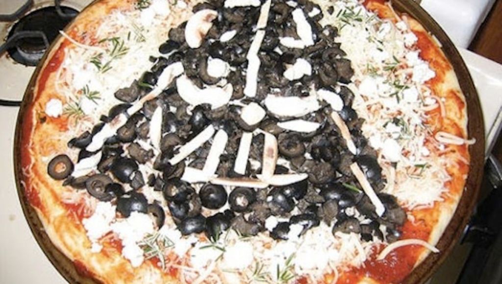 Hacer esta pizza tan divertida es muy secillo. Tan solo tendrás que preparar la masa con normalidad, con una base de tomate y queso. Encima, pondremos aceitunas y champiñones hasta conseguir darle la forma de la cara de Darth Vader. La calentamos en el horno a 180º hasta conseguir que el borde esté tostado y, listo para comer!