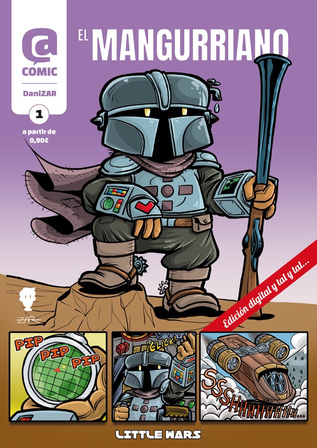 El ilustrador Daniel Zarzuelo, más conocido como Dani Zar, que tiene en su haber otras obras como Águila Coja, un webcómic paródico de la popular serie televisiva de RTVE, o las aventuras de Little Renna, acaba de lanzar un webcomic centrado en las aventuras de un Mandaloriano muy parecido al que todos conocemos de la televisión, pero con un aire muy diferente… y que lleva por nombre EL MANGURRIANO.