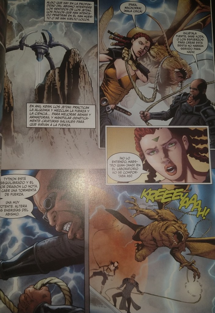 Queridos Bibliotecarios os dejamos aquí un tremendo capítulo que tiene de todo, Jedi y sables de luz, un maestro Sskeer cada vez más deteriorado mentalmente, pero dispuesto a utilizar lo aprendido de la experiencia con los drengir para ayudar a sus compañeros; su preocupada aprendiz Keeve Trennis, gigantescos rancors, una entretenida batalla contra los Hutt, mercenarios, ciudadanos asustados y los drengir… Es como explosión de acontecimientos, personajes y momentos en una enorme historia que se pone cada vez más buena.