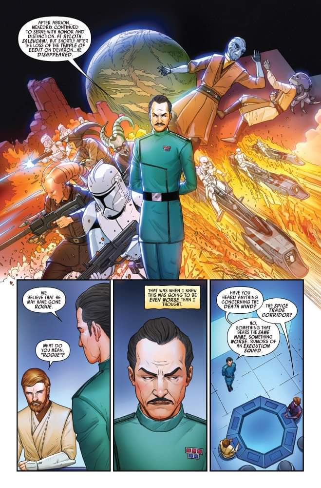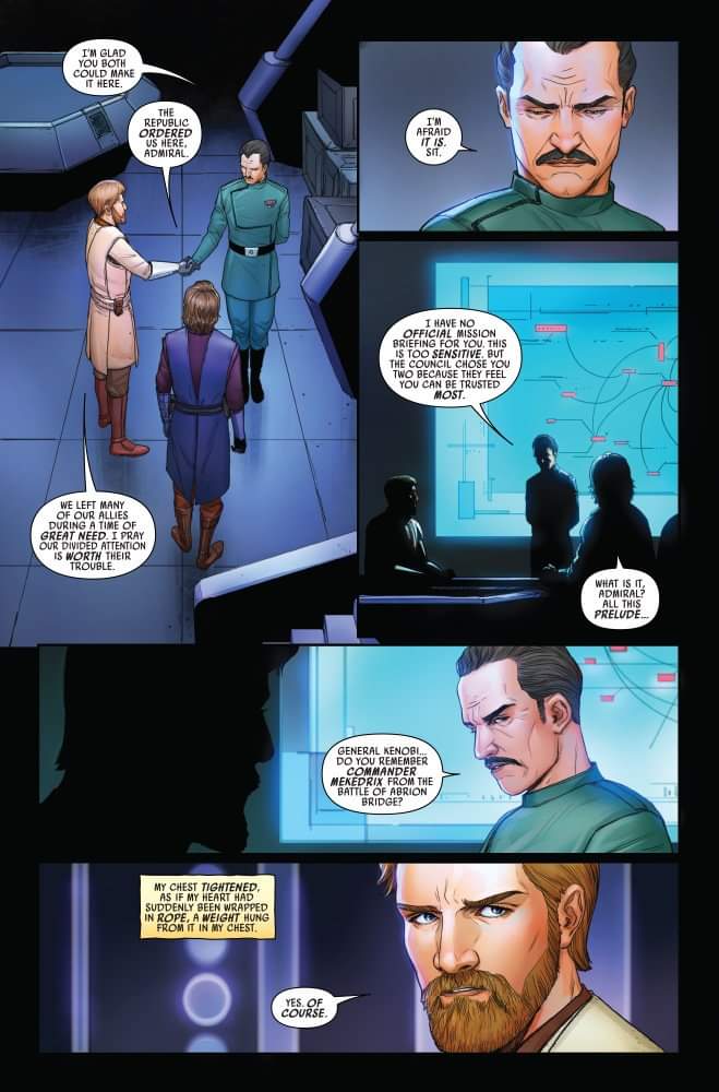 En cuanto a personajes nuevos, destacan tres por encima del resto: la citada aprendiza zabrak Mill Alibeth, la comando neimodiana Ruug Quarnom —contacto que establecerá Obi-Wan en Cato Neimoidia— y Ketar, un soldado a su cargo. La primera, que a simple vista podría parecernos un trasunto de Ahsoka, tiene un carácter más calmado que ésta, con sus dudas y miedos, que la harán evolucionar hasta descubrir su peculiar habilidad con la Fuerza. Es, además, de estos tres personajes, el único que ha tenido más recorrido, ya que fue mencionada previamente en el cómic Hyperspace Stories 4 (Amanda Deibert, 2023), situado prácticamente cincuenta años después, y en el que se intuía cómo había sido su vida.