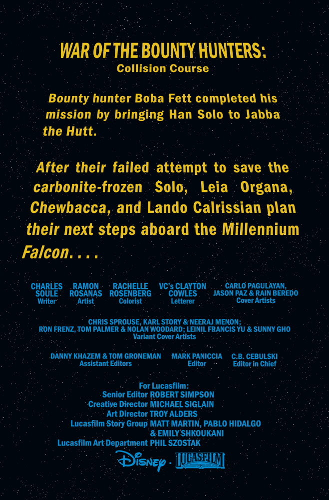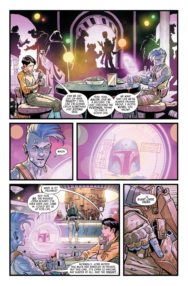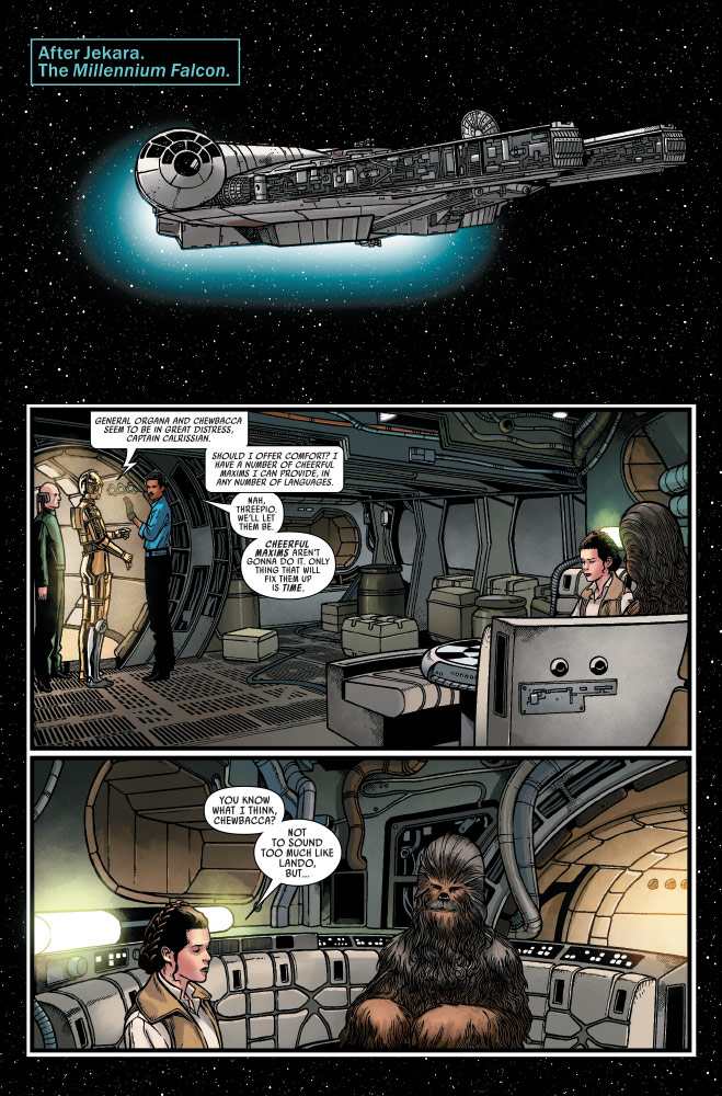 En la vista previa exclusiva del próximo cómic Star Wars #18 de Marvel, parte del evento War of the Bounty Hunters, Leia y Chewbacca se toman un momento para llorar después de no poder salvar a su amigo. Mientras tanto, Beilert Valance recibe la ayuda de T’onga en el próximo número de Bounty Hunters, también disponible el próximo mes.