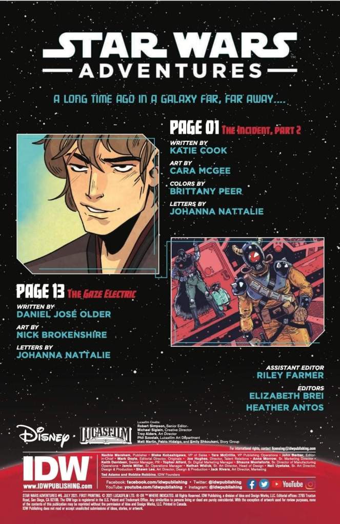 Vista previa y portadas del esperado cómic Star Wars Adventures #6 de la editorial IDW Publishing que sale a la venta en USA éste 7 de julio.