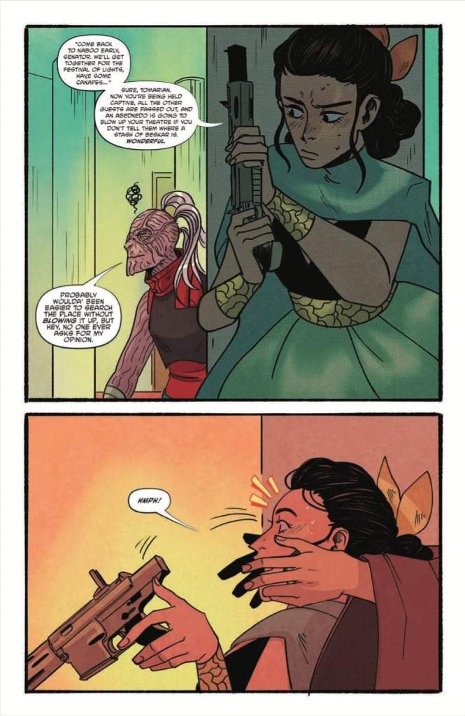 Padmé y Anakin tienen grandes planes para pasar una noche romántica juntos después de una larga separación. Pero antes de que tengan la oportunidad de reunirse, ¡Anakin es dominado por un grupo de forajidos! Ahora le toca a Padme usar toda su astucia para infiltrarse en el grupo de forajidos y rescatarlo. Luego, ¡echa un vistazo a los tiempos de The High Republic con una historia de los temibles Nihil!