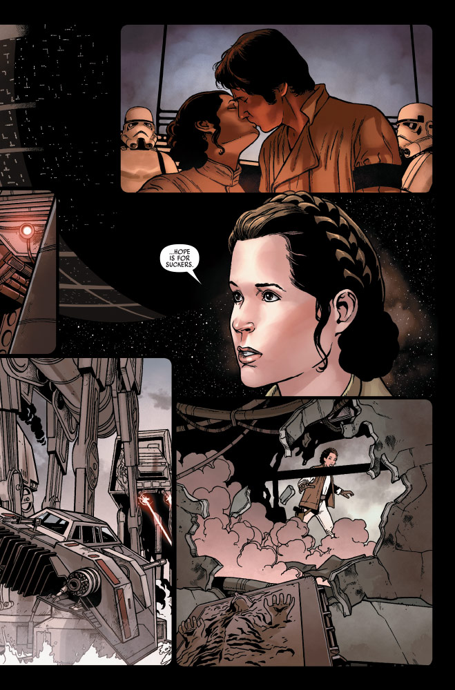 La resistente princesa Leia Organa ha llegado a su punto de ruptura. En la carrera por recuperar a Han Solo, todavía congelado en carbonita, tenía la victoria a su alcance. Y luego lo perdió de nuevo.