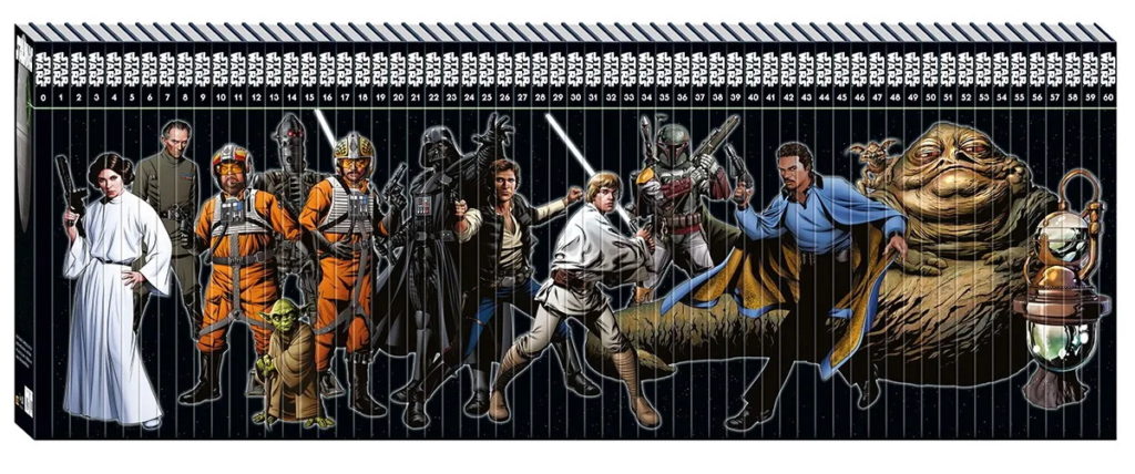 La colección parece que contendrá 60 números en tapa dura más un número cero especial y además, los suscriptores tendrán de regalo un tomo especial que contiene el cómic Star Wars # 108: Forever Crimson, un número especial realizado en los últimos años pero que transcurre dentro del antiguo universo expandido, ahora llamado Leyendas.