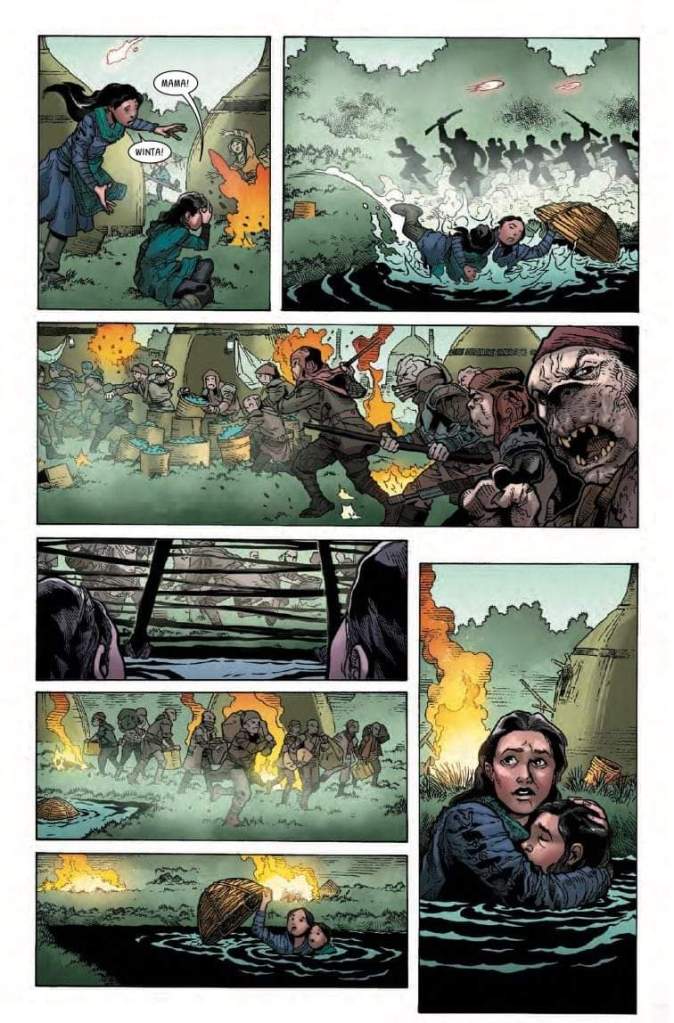 La tinta es obra de Silvia de Ventura, también italiana de Roma. Sus trabajos como ilustradora son muy variados y ha trabajado para Disney, Pixar… Parece ser su primera incursión en el mundo de Star Wars, aunque hemos encontrado esta simpática ilustración de Yoda en su Instagram. El trabajo dando dinamismo a los trazos es muy bueno, con distintos grosores para ofrecer matices.