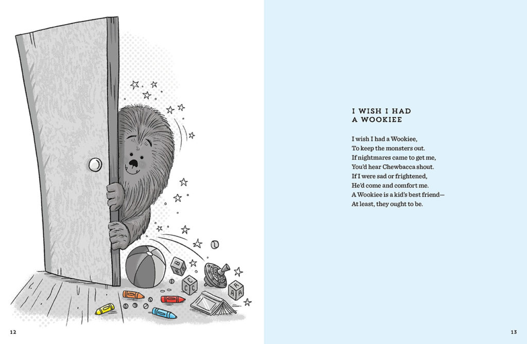 Todos hemos conocido el puro placer de abrir una nueva figura de acción de Star Wars o imaginarnos en la cabina de uno de los muchos trozos de chatarra que surcan la galaxia muy, muy lejana, junto a nuestro leal copiloto wookiee, Chewbacca. En su nuevo libro, Star Wars: Ojalá tuviera un wookiee, el autor Ian Doescher explora estos divertidos sueños de la infancia con una colección de más de 75 poemas originales y caprichosos ilustrados por Tim Budgen.