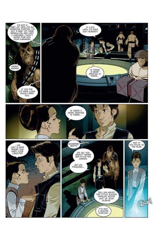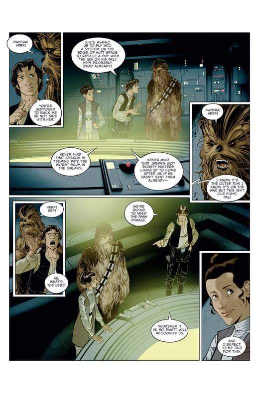 De vuelta a la cantina vemos que el anciano era en realidad el brabucón de Han, que metido de nuevo en problemas con el grupo de cazarrecompensas en el que se entrometió volverá a necesitar la ayuda de la capitana Leighton para salirse con la suya.