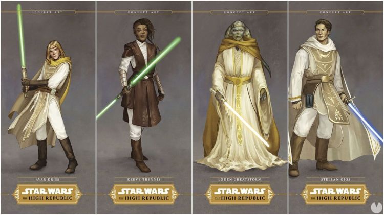 Ya conocemos alguno de los Jedi que van a protagonizar esta nueva era, por lo que suponemos que al menos los que aparecen en la portada, Avar Kriss (la Jedi humana al frente), Burryaga (el wookie Jedi), el Jedi humano masculino del que aún no conocemos el nombre y Loden Greatstorm (el Twi-lek al fondo), serán los protagonistas de esta historia.
