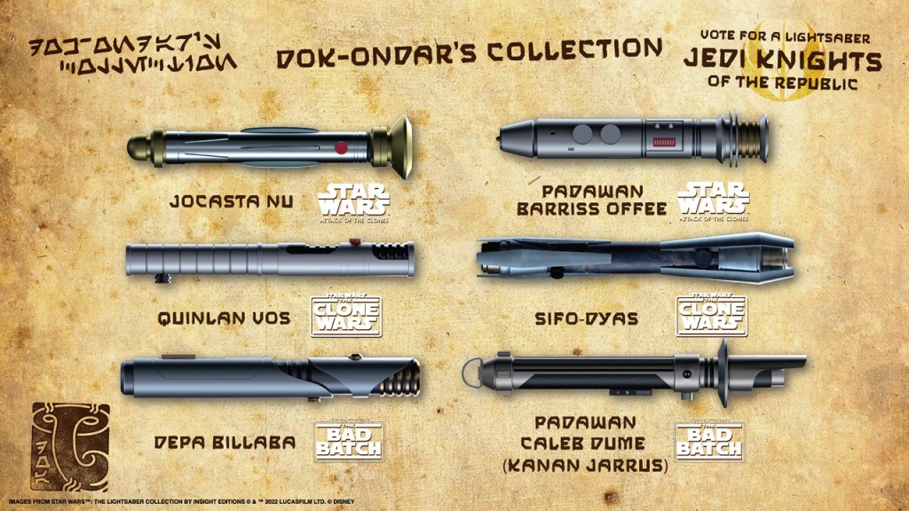 «Ver el sable láser Legacy de Stellan Gios en toda su gloria es verdaderamente surrealista, por decirlo moderadamente«, dijo Michael Siglain, director creativo de Lucasfilm Publishing. «Esta era muestra la edad dorada de los Jedi, que se ejemplifica con el diseño del arma del Maestro Jedi Stellan Gios. El artista Jeff Thomas tomó esa idea de «Jedi en su mejor momento» y creó un sable láser tan icónico como brillantemente ornamentado, y que es instantáneamente reconocible como un sable láser de la Alta República.»