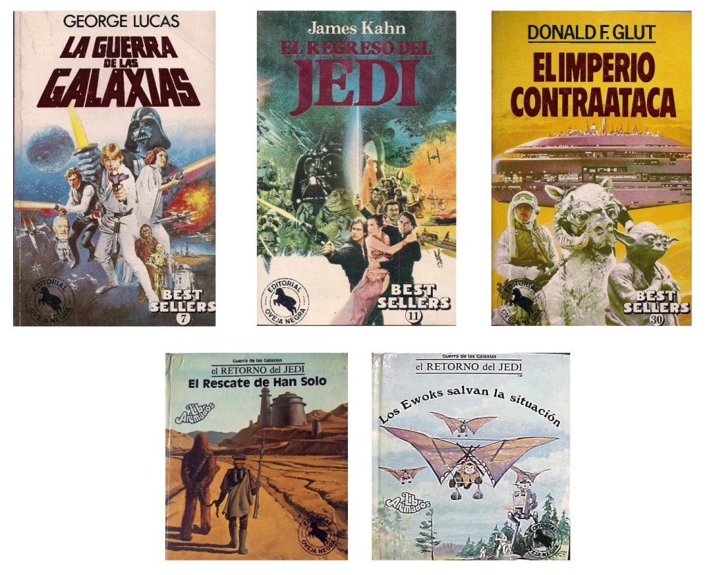 Libros Animados de Norma (Colombia)Ediciones de México (izq.) y Argentina (der.) de El retorno del jedi en 1983Colección BestSellers de Origen/Planeta (México)Libros editados por Oveja Negra (Colombia)Círculo de Lectores. Imagen cedida por cortesía de Duncan Jenkins (SW The Archive Database)