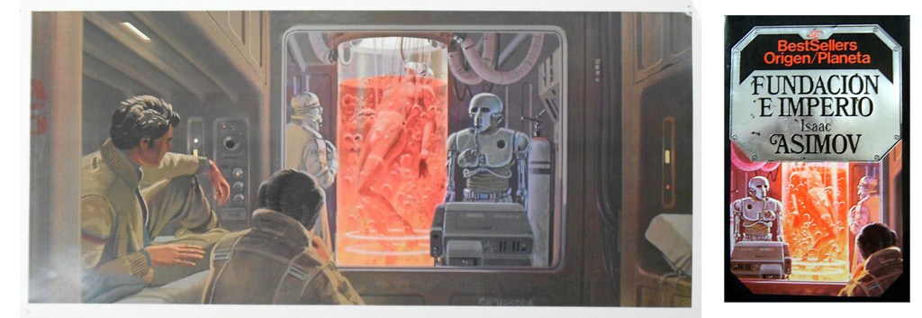 La portada de Fundación e Imperio está ilustrada con un recorte de uno de los bocetos originales de Ralph McQuarrie para El Imperio Contraataca (con la imagen invertida en horizontal).
