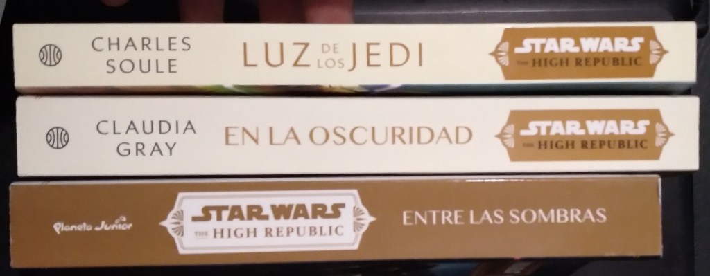 En 2022, además de las obras que hemos mencionado, Planeta seguiría con el proyecto The High Republic con Tormenta Creciente (Rising Storm, Cavan Scott, 2021) y nos sorprendería recuperando las publicaciones inéditas de la continuidad de Leyendas, siempre relacionadas, al menos en cuanto a personajes, con las series de streaming. Así pués, en marzo La armadura mandaloriana (The Mandalorian Armor, K. W. Jeter, 1998), la primera de la Trilogía de La guerra de los cazarrecompensas, a la que seguiría Nave esclava (Slave Ship, K. W. Jeter, 1998) en junio, y Mercancía dura (Hard Merchandise, K. W. Jeter, 1999) en agosto; además de la ansiada Kenobi (Kenobi, John Jackson Miller, 2013), en abril. Este año también se editan tres obras singulares. La primera, Skywalker: Una familia en guerra (Skywalker: a Family at War, Kristin Baver, 2021), no es una novela original per se, ya que es una biografía familiar novelada, cercana al ensayo, pero la mencionamos ya que Planeta la vende como tal. La segunda, Ronin (Ronin: A Visions Novel, Emma Mieko Candon, 2021), basada en el episodio homónimo de la serie de anime Star Wars: Visions, no canónica. Y la tercera, Doctora Aphra (Doctor Aphra, Sarha Kuhn, 2020), que es la transcripción de un audiolibro. En 2023, además de seguir con The High Republic con la novela Estrella caída (The Fallen Star, Claudia Gray, 2022) en febrero, por fin llegó la Trilogía de la reina, con La sombra de la reina (Queen’s Shadow, E. K. Johnston, 2019) en enero, El peligro de la reina (Queen’s Peril, E. K. Johnston, 2020) en mayo, y en septiembre La esperanza de la reina (Queen’s Hope, E. K. Johnston, 2022). Entre medias, también en mayo, Hermandad (Brotherhood, Mike Chen, 2022) y en octubre, Sombra de los Sith (Shadow of the Sith, Adam Christopher, 2022). En noviembre, y con una política editorial un poco errática, se inicia la segunda fase del proyecto The High Republic con Convergencia (Convergence, Zoraida Córdova, 2022), sin haber cerrado la primera, ya que la rama juvenil, Planeta Junior, la dejó incompleta. El año 2024 supuso un agravamiento del tratamiento que estaba padeciendo la serie The High Republic, ya que únicamente llegaron dos obras y muy deslavazadas: en enero La batalla de Jedha (The Battle of Jedha, George Mann, 2023), la transcripción de un audiolibro, y en febrero Cataclismo (Cataclysm, Lydia Kang, 2023). En los meses siguientes se publicó en abril La princesa y el sinvergüenza (The Princess and the Scoundrel, Beth Revis, 2022) y en junio Inquisidora: El ascenso del filo rojo (Inquisitor: Rise of the Red Blade, Delilah S. Dawson, 2023).