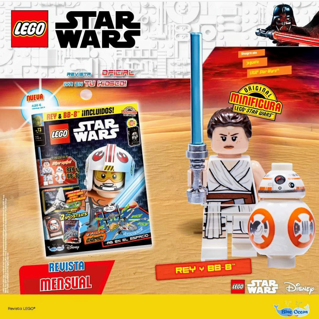 La revista Lego Star Wars, la más duradera revista de España sobre la guerra de las galaxias, con pasatiempos, posters, comics y muchas sorpresas más. En este número vienen de regalo las minifiguras de Rey y BB-8.