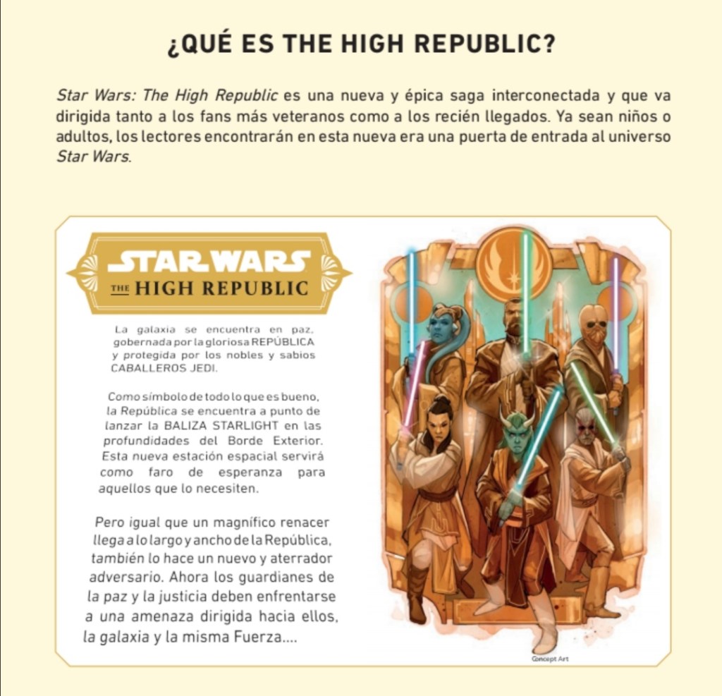 Tras los anuncios por parte de la editorial Planeta Cómic de la llegada de las novelas que componen la nueva era de historias de Star Wars llamada The High Republic (La Alta República), nos acabamos de enterar a través de un pdf que han colgado en Planetadelibros.com, de la llegada de las dos series de cómics que acompañan al evento, y si, en formato tomo de tapa dura. Estamos hablando de la serie de cómic de Marvel del equipo creativo Cavan Scott y Ario Anindito que lleva por nombre Star Wars The High Republic, y la serie de IDW de carácter más juvenil del equipo creativo de Daniel José Older y Harvey Tolibao que lleva por nombre Star Wars The High Republic Adventures. Ambas son series mensuales abiertas que actuslmente van por el número tres en USA.
