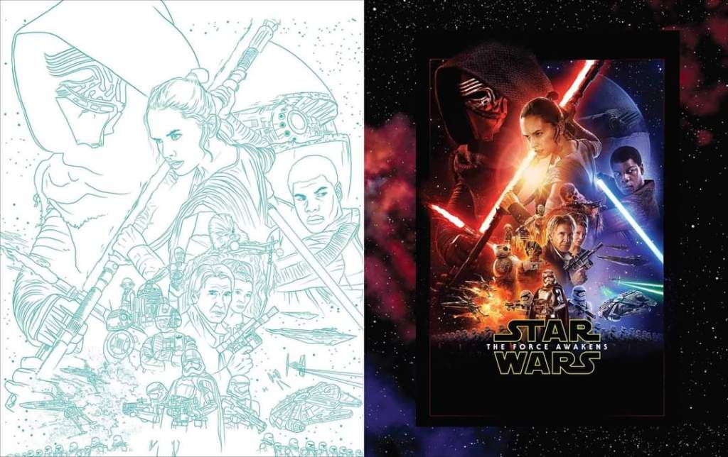“Que me pidan que ilustre a Darth Vader sentado en su trono en Mustafar es el sueño de ese niño de siete años hecho realidad. El tema de mi ilustración es ‘el lado claro y el lado oscuro’, con el trono apuntando a la última redención y ascensión de Vader al lado claro, mientras sus pies están firmemente plantados en Mustafar. El diseño del triángulo representa el poder en la dirección en la que apunta.