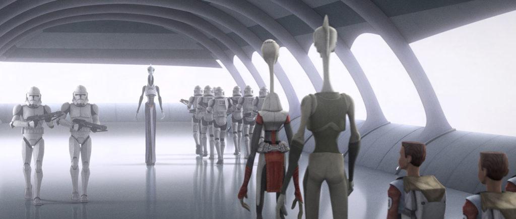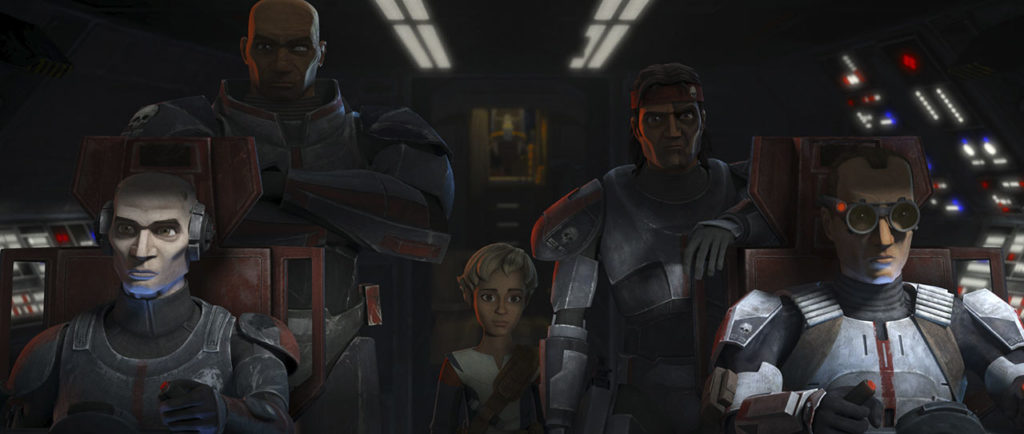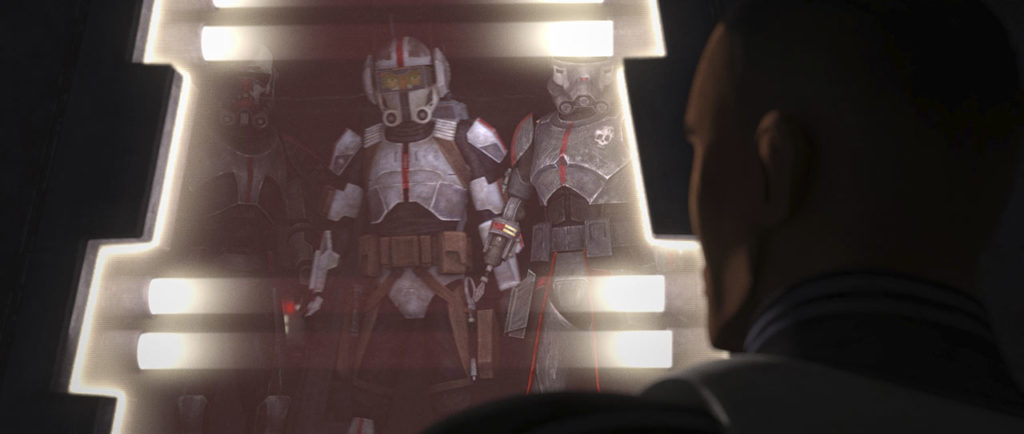 Seguimos sumando nombres a los Caballeros de Ren. A los ya conocidos Cardo, Vicrul y Ren añadimos a Massif (nombre que Soule reveló en Twitter) y Marinda (la de las trenzas -que no siempre vemos- y los cuernos en la drente). Pero aún no sabemos el nombre de la togruta, por ejemplo, o de el de la boca felina (que luego vemos completamente enmascarado).