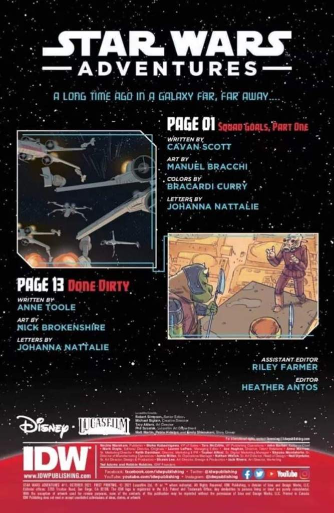 Nuevo Escuadrón Pícaro, nuevos Rojo Dos, Cuatro y Cinco… Lo primero nada más abrir el cómic es Rogue Squadron y ya estábamos saltando de gozo. Vuelvo atrás y veo que está escrito por el gran Cavan Scott y entonces sé que va a ser una maravilla. Los que se estén perdiendo esta maravillosa serie de Aventuras se arrepentirán algún día. En esta primera parte tenemos una sencilla y emocionante historia con una novata con muchas ganas de comerse el mundo. Cavan disfrutando y haciéndonos disfrutar. Parecía que el escritor ya había dado el salto a los productos «grandes» pero es que se ve que aquí se disfruta y nosotros con ello.
