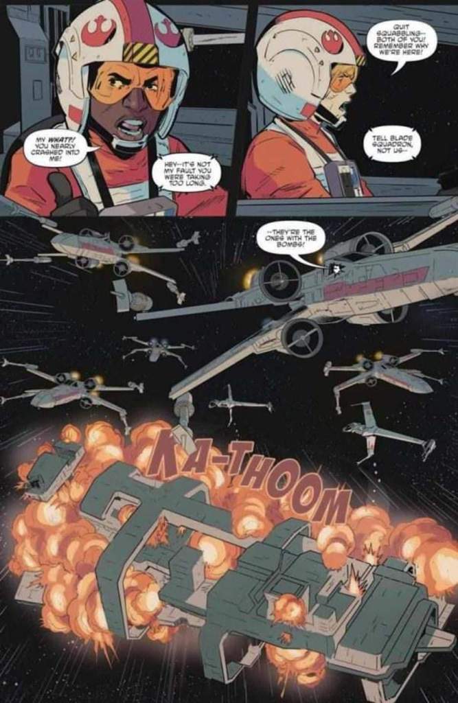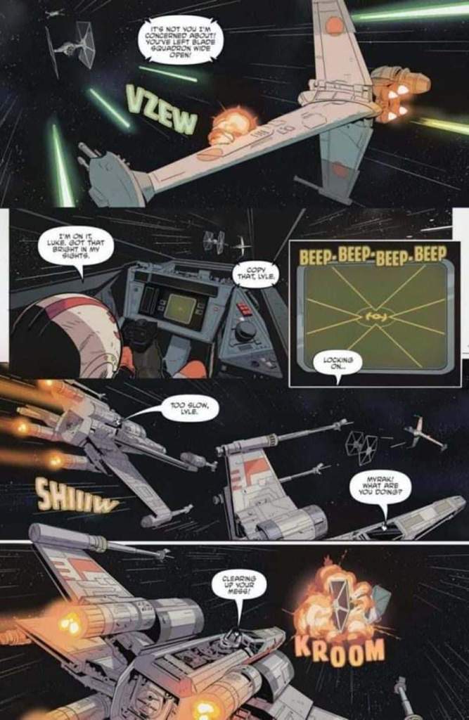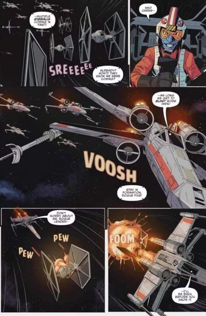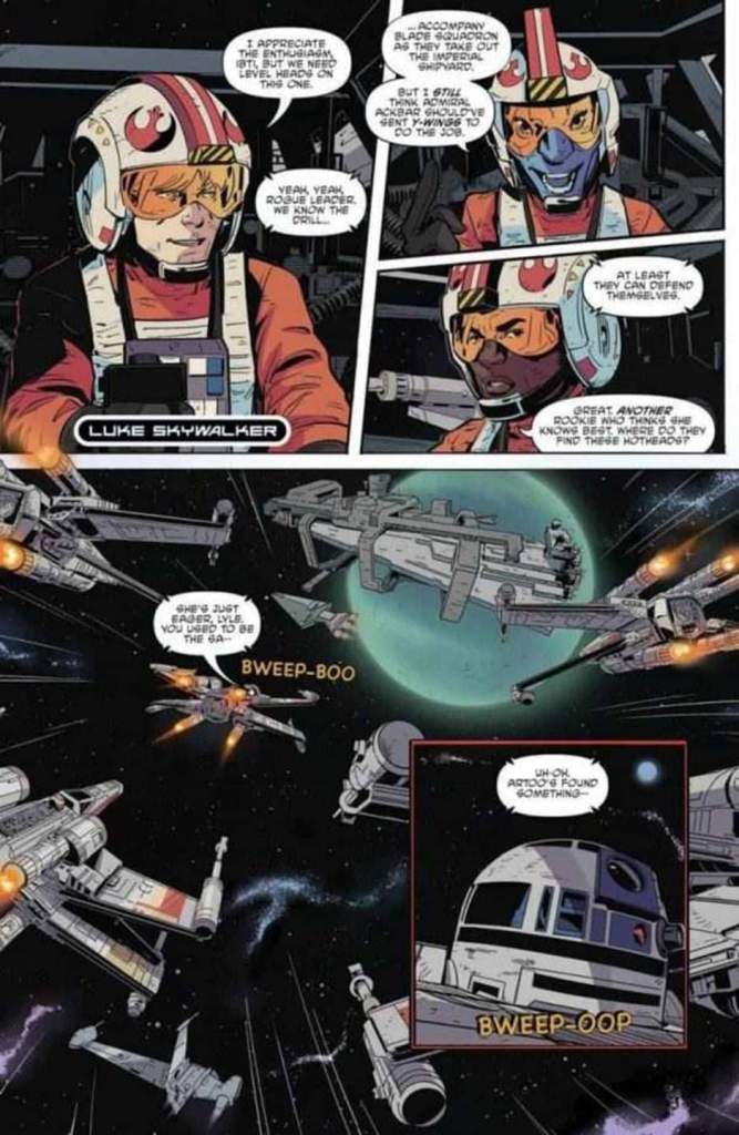 El equipo artístico vuelve a lucirse en este número donde el protagonismo es totalmente de las naves. Pero destacar también algunos puntos como la composición del cara a cara de Luke y Kullan. Los rostros de los personajes están sensacionales, y tanto el color como la elección de los planos de las carlingas son sensacionales y dan un sabor a trilogía original que nos deja deseando leer mas historias de este escuadrón realizadas por el equipo de esta historia.