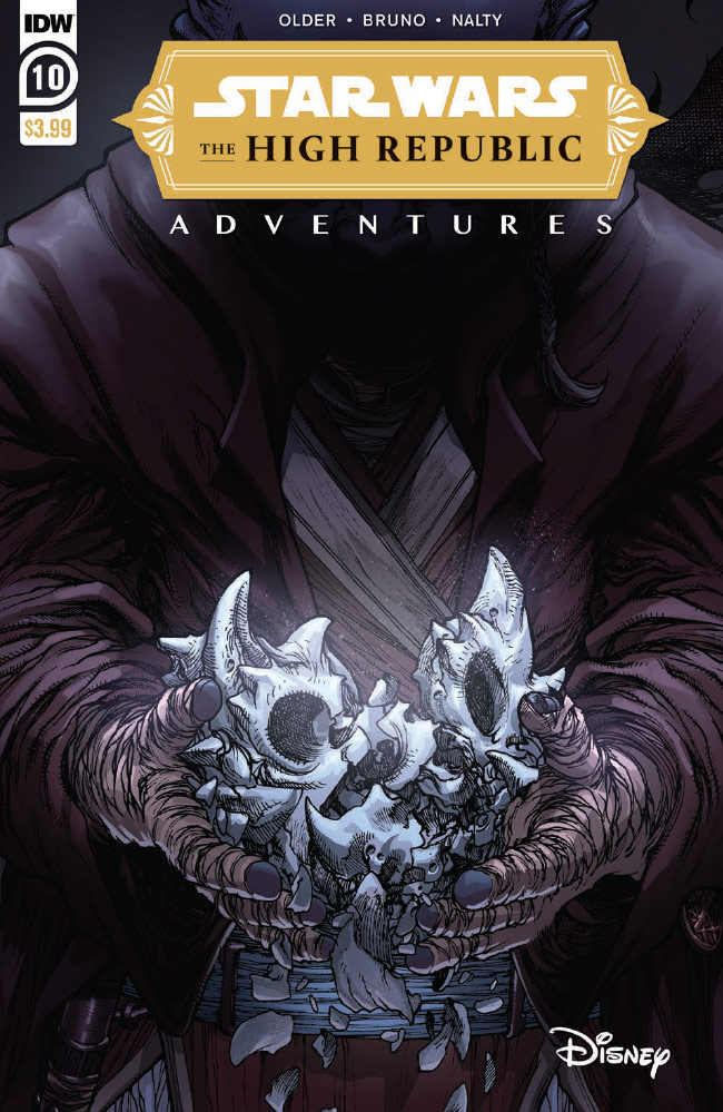 Daniel José Older sabe darles su propia voz a los personajes y en este número vuelve a hacer su magia con Sav Malagán. En apenas un par de viñetas es capaz de darnos una profundidad mucho mas interesante y personal de un personaje que hacía su primera aparición en el The High Republic Adventures #8, el primero de este nuevo arco. Y además de regalarnos una fugaz nueva (a la vez que vieja) aparición de Yoda, nos desarrolla también a Qort hacia su nueva «evolución» (como si de un Pokémon se tratase). El aloxian deja atrás su antiguo caparazón y se revela como un poderoso Jedi digno aprendiz de su otrora maestra Sav.