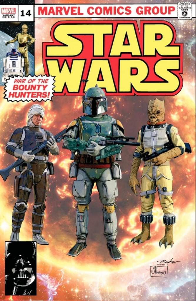 Pero si hablamos de cazarrecompensas, el nuevo canon hace un aporte destacado al otorgarles su propia serie titulada Cazarrecompensas (Bounty Hunters), iniciada en marzo de 2020 y que continúa actualmente, que transcurre (hasta el momento) entre El Imperio Contraataca y El Retorno de Jedi, y nos presenta a los cazarrecompensas que aparecen en esas películas, además de Valance, un personaje creado en la serie clásica de Marvel y reincorporado al nuevo canon por la misma editorial. La serie, que a su vez atraviesa varios crossovers, se está publicando en español tanto en España (Planeta Comic desde septiembre de 2021) como en México (Panini desde julio de 2021) en el formato de tomos recopilatorios.