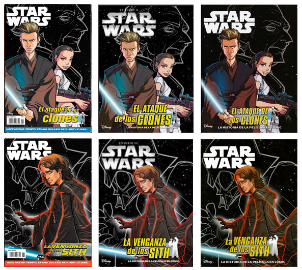 Portadas de los números de la Star Wars Magazine, y sus variantes, que tenían relatos (extraídas de la web de Star Wars Spanish Stuff)