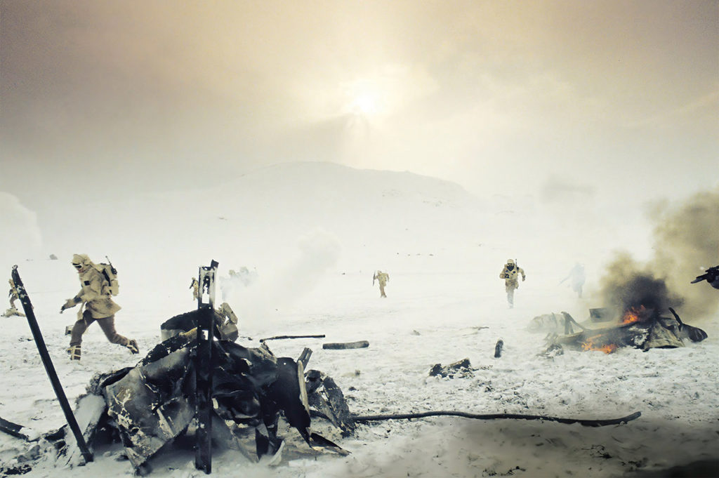 EL ORIGEN Al igual que hizo para Una nueva esperanza, George Lucas hizo una lista de planetas en sus notas cuando empezó a imaginar la secuela. Entre ellos, nombró: el planeta Wookiee -en el que empezó a trabajar el ilustrador de producción Ralph McQuarrie desde que firmó su contrato en octubre de 1977-, pero que no aparecería en la película; un planeta gaseoso llamado Hoth -que luego se convertiría en Bespin, donde flota la Ciudad de las Nubes de Lando- y un genérico «Planeta de Hielo». Sólo en el segundo borrador del guión, en 1978, se asignó el nombre al planeta de hielo real donde los rebeldes establecerían su nuevo puesto de avanzada. Desde el Reino de Hielo de Mongo que aparece en la serie de cómics Flash Gordon de Alex Raymond (del 12 de marzo de 1939 al 7 de abril de 1940) hasta La cosa de otro mundo (1951) de Howard Hawks, varias influencias dieron forma al concepto y desarrollo de Hoth. Así es como el propio Lucas describió el planeta en 1977: «Podríamos empezar en el Planeta de Hielo, lo que sería sorprendente. Nunca hemos estado allí, una instalación subterránea en un gigantesco banco de nieve. Muy hostil, con el viento soplando y el frío».
