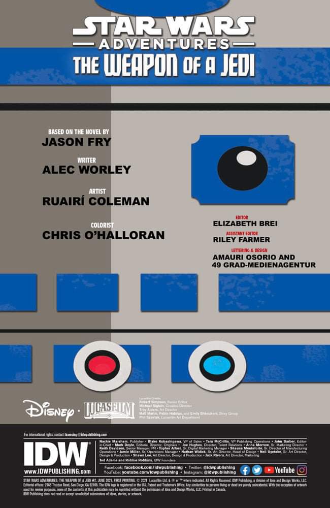 Por la parte de IDW como editora también es una alegría ver que estos cómics que originalmente estaban dedicados a mercados secundarios, tengan una edición en Estados Unidos, ya que aunque sepamos que eran canon, obtienen una capacidad mayor para ser recopilados, reeditados o incluso simplemente editados si hablamos de España, donde aún siguen inéditos. Lo próximo anunciado es la adaptación de El Arma de un Jedi, también adaptación de otra de las novelas de Rumbo al Despertar de la Fuerza.