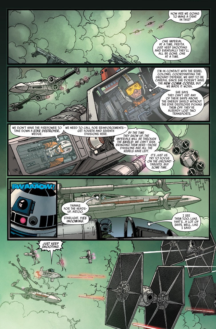 Otra historia en la que no solo Wedge se destaca, sino también los protagonistas de la trilogía original (sí, ¡incluso Leia se pone el casco!) son los dos primeros arcos de la serie Star Wars (2013), una especie de relanzamiento hecho por Dark Horse. Sus dos primeros arcos, In the Shadow of Yavin From the Ruins of Alderaan están repletas de acción de escuadrones de pilotos, tanto de la Alianza como de cazas imperiales, a un nivel de pericia y batallas que equipara las de la serie X-Wing.